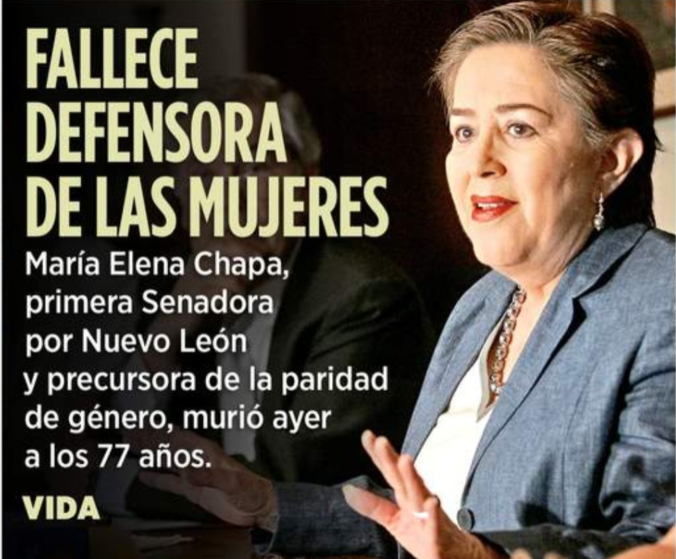 Pensé que eras inmortal María Elena. Tuve la fortuna de convivir en innumerables ocasiones con María Elena Chapa Hernández. Su partida me ha tomado desprevenido. Estoy triste, me parecía inmortal. Me quedo con memorables y bellas anécdotas. Reuniones en mi casa y conversaciones en la Casa del Senado, su norestense oficina en el Barrio Antiguo de Monterrey. María Elena fue una mujer aguerrida y valiente, gentil y elegante, inteligente y sensible. Punto de referencia. Además, fue una mujer con un sentido del humor único. Reía a carcajadas. Decía palabrotas, palabritas y palabrones; usaba el lenguaje de acuerdo a las circunstancias. Hace algunos años, estando en mi casa, María Elena advirtió que se terminaron sus cigarrillos. Ésa sí era una tragedia, más aún después de comer. Y como si estuviera en su curul del Senado de la República, pidió silencio a la concurrencia para exclamar con donaire magisterial: Andrés, o me mandas comprar cigarrillos o me fumo tus libros, hoja por hoja. Era divertidísima, sabia pedir las cosas. Me daba la impresión que María Elena no tenía edad. Para ella, envejecer nunca fue la juventud que se fue, sino la oportunidad de empoderarse como mujer para hacer más por los demás. Se adaptó a las circunstancias y se relacionó bien con todo el mundo, menos con los pendejos -a ésos les dio por su lado-. Defendió lo defendible e indefendible. Respetuosa e institucional, se puso al tú por tú con quien debía ponerse al tú por tú. No le tenía miedo a nadie. Lo vi, no me lo contaron. Si la docencia fue su vínculo con niños y jóvenes, el servicio público fue su conexión con las causas humanitarias, con la defensa de los derechos de las mujeres y la búsqueda de equidad de género. Su activismo político y solidaridad con los más vulnerables fue siempre misericorde y comprometida con la sociedad. Descanse en paz María Elena Chapa Hernández.