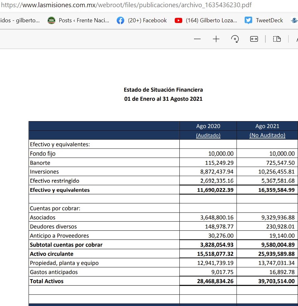 Según último REPORTE de página OFICIAL bajo su responsabilidad, tienen en caja 16.4 millones de pesos.