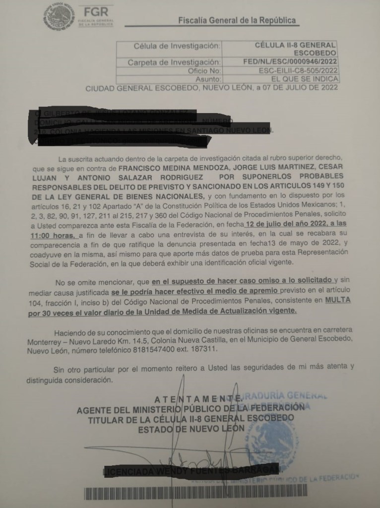 Los AMPARADOS desde octubre del 2021 contra daños a nuestro patrimonio por causa de la ADMINISTRACIÓN DEL CONDOMINIO, hemos sido nombrados coadyuvantes de la INVESTIGACIÓN, y hemos sido citados formal y por escrito por la FGR para presentarnos este martes 12 de Julio.