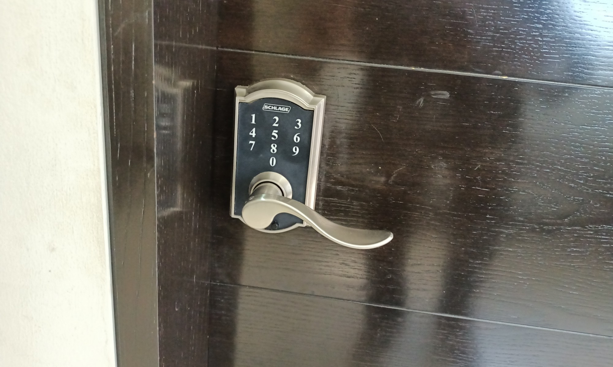 3. La puerta de servicio para entrada a las 4 AM, abierta de par en par, con UN guardia.